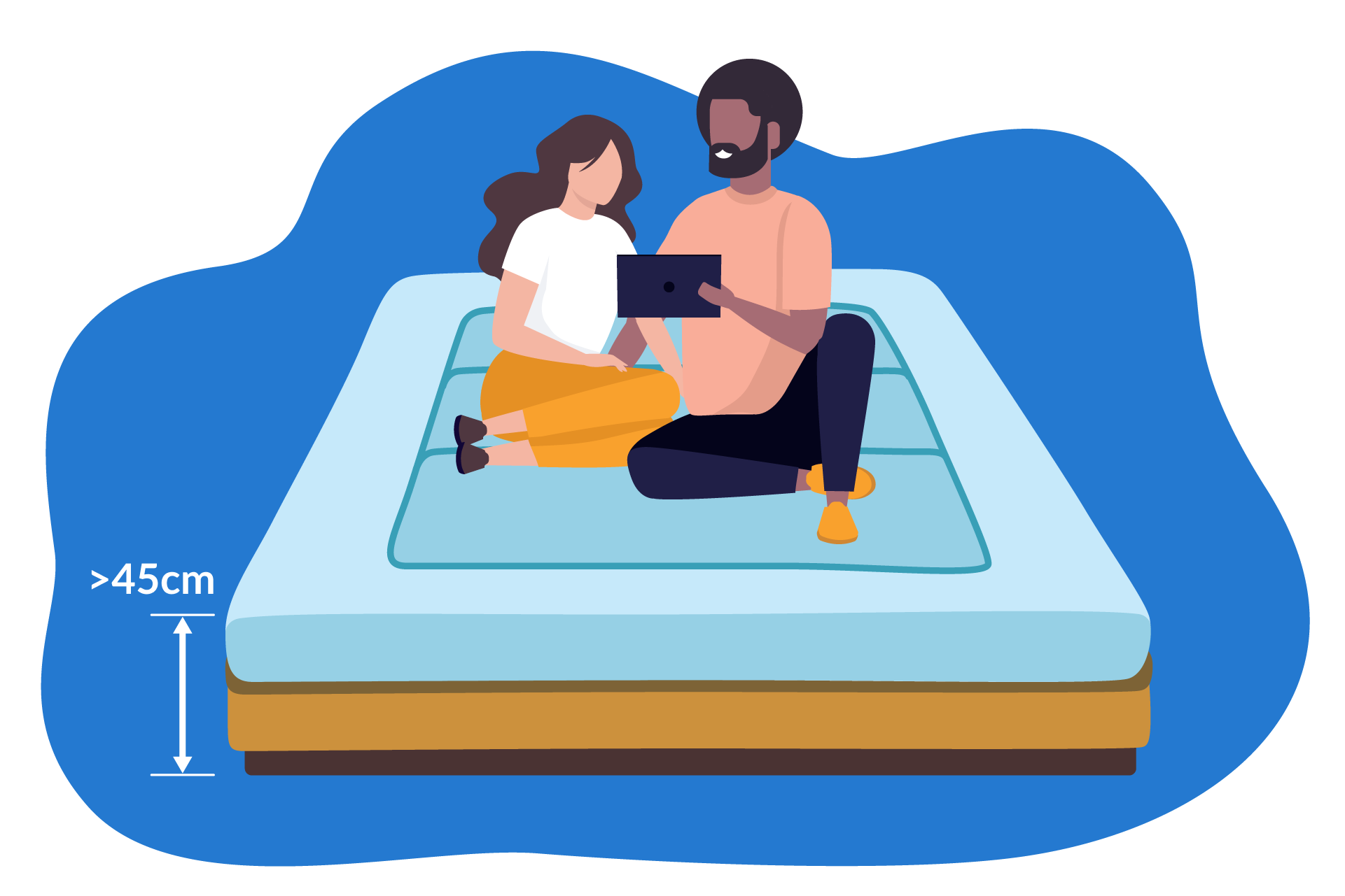 Para quienes duermen en pareja, será necesario hacer concesiones para elegir una cama que satisfaga las necesidades de ambos. Como normal general, una cama de 50 cm de altura debería ser adecuada para una pareja de tamaño medio 🧑❤️👩